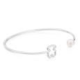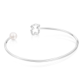 TOUS women's silver bracelet from the New Silueta collection decorated with a cultured pearl and the silhouette of an iconic teddy bear.